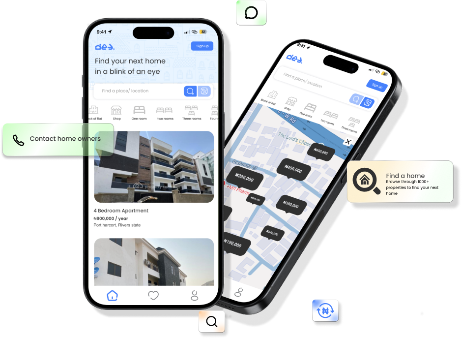 Discover your new home in no time and easily list your properties with our cutting-edge real estate web app. Enjoy a comfortable, easy, and affordable experience tailored for everyone. we dey for you.